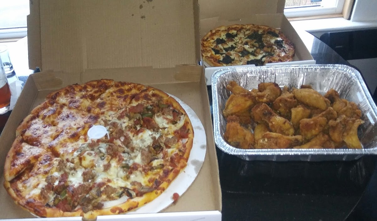 The wings were huge and fried to our liking. I ordered white pizza with spinach and chicken, that was very good. Although the Giants lost the 1ST Preseason game we had a great time with great food and company.
